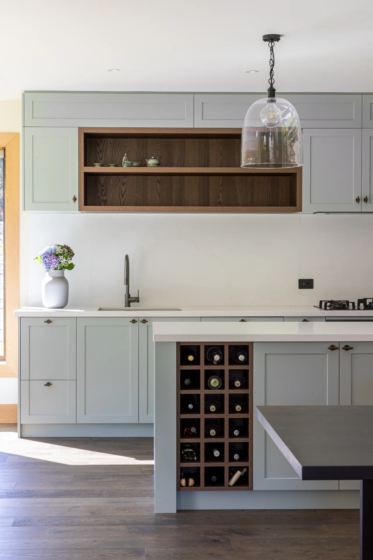 Once the location of a humble farmhouse, the site has been thoughtfully reimagined, with much of the original landscape and established gardens lovingly preserved and repurposed. Driving down the tree-lined driveway, past open fields and tranquil ponds, there's an immediate sense that this home truly belongs here. Inside, the atmosphere continues to reflect a deep sense of place. While unmistakably new, the interiors echo the charm and warmth of a traditional rural home. Rich oak doors, hand-crafted wardrobes, and a striking timber staircase fill the air with that unmistakable scent of real wood. These natural elements are perfectly paired with a calming palette of creams, soft blues, and gentle greys. A hidden door reveals a secret room—a delightful touch of craftsmanship that adds mystery and whimsy. The dedicated library or office space is lined with bespoke joinery shelving, providing the perfect showcase for a lifetime of books, achievements, and travel treasures. At the heart of the home lies a dream entertainer’s kitchen: a modern interpretation of the classic farmhouse style, complete with a feature schist wall that echoes the exterior’s stonework and ties the entire aesthetic together. This home wraps you in a quiet sense of warmth and peace—the kind of place where you can sip coffee by the window and forget the chaos of the outside world. It's not just a house; it’s a sanctuary.